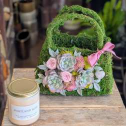Price: $140.00Foxglove- Faux and Preserved Botanical With A Portland Rose Candle