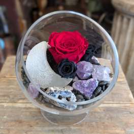 Price: $185.00 Rosé Noir- A Preserved Rose And Sola Wood Flower Hand Tied Bouquet Product Tags: Same-day Delivery