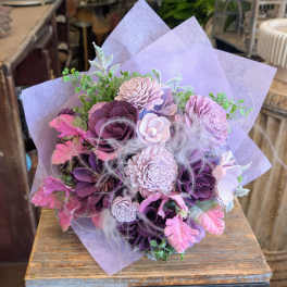 Price: $185.00 Moonpetal - A Preserved Rose And Sola Wood Flower Hand Tied Bouquet Product Tags: Same-day Delivery