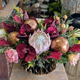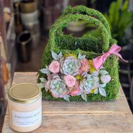Price: $140.00 Foxglove- Faux and Preserved Botanical With A Portland Rose Candle Product Tags: Next-day Delivery
