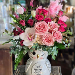 Price: $145.00 Aurielle Arrangement With A Cake Candle with Surprise Crystal Inside Product Tags: Best seller Same-day Delivery